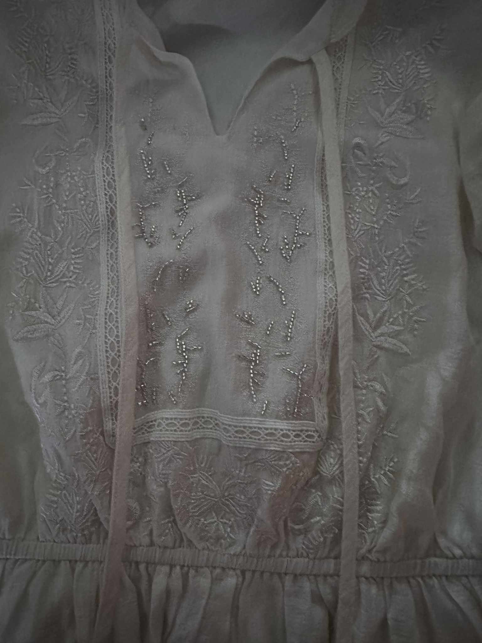 Cream Embroidered 70s style Midi Dress