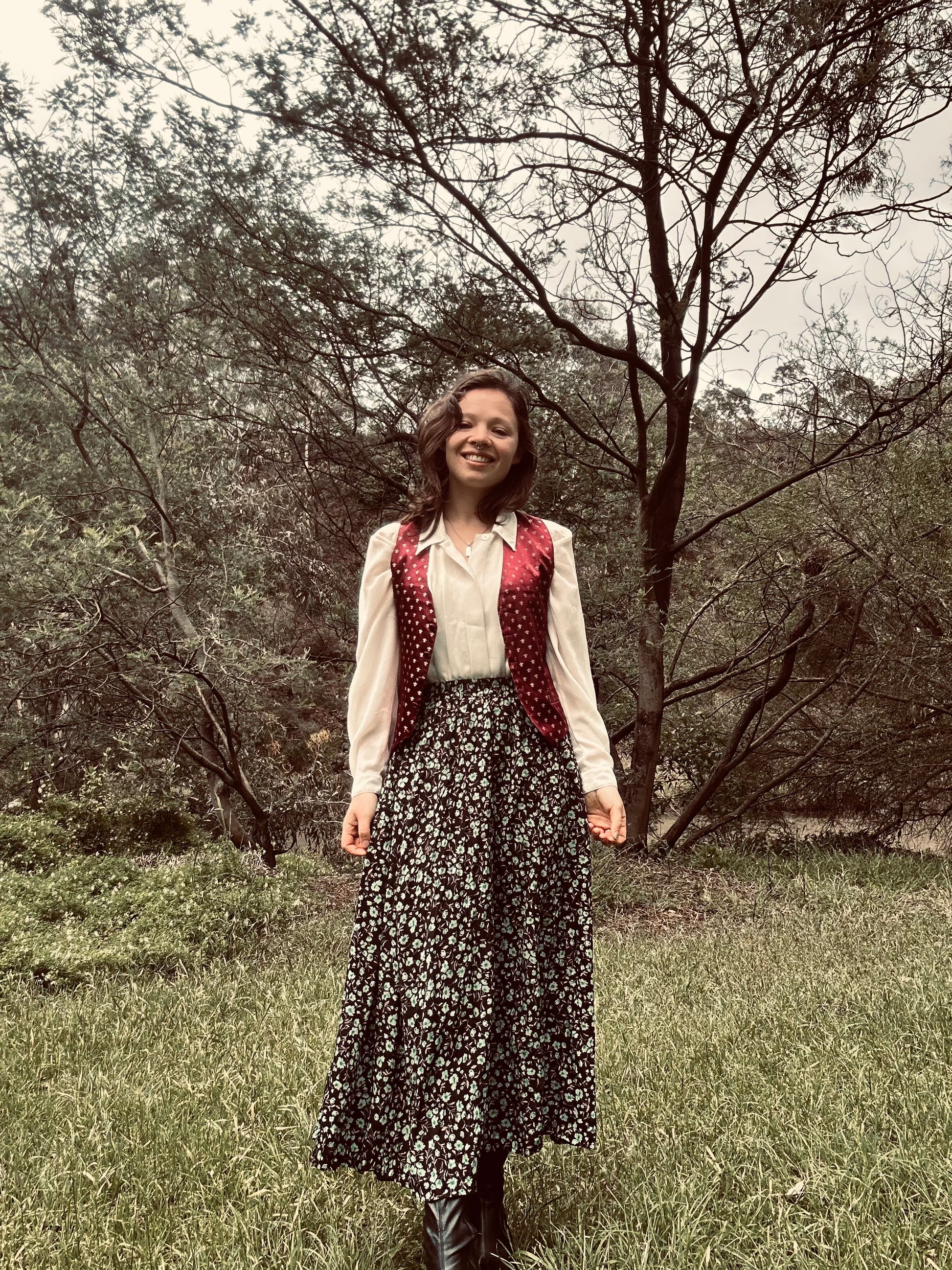 Slip into a dream with this effortlessly bohemian cotton skirt. With its soft elastic waistband and flowy silhouette, it’s made for twirling through meadows, writing songs in your journal, or just feeling free. The ditsy floral print gives off a timeless Joni Mitchell vibe — poetic, easy, and perfectly lived-in.