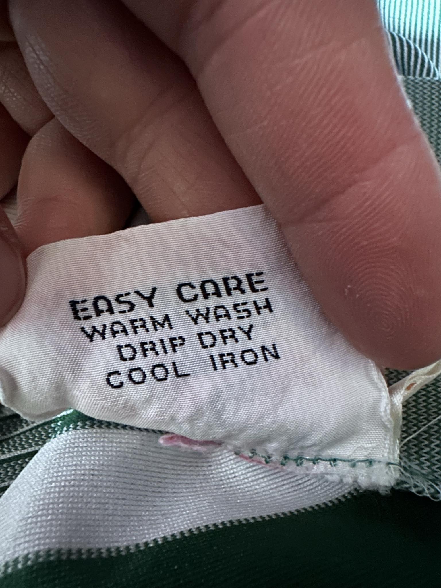Embrace effortless 70s style with this stunning vintage summer dress in soft green and white. Crafted for comfort, the flowing silhouette and breathable fabric make it perfect for warm weather wear. True to its era, this piece captures the relaxed elegance of 1970s fashion. Sized 10-12, it's an ideal find for vintage enthusiasts seeking authentic, quality pieces. Check the garment tags for additional fabric and care details to ensure proper maintenance of this timeless treasure.